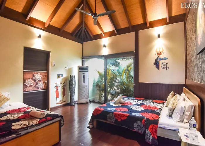 The property is 10 minutes' drive from Awas Beach. You can get to karmarkar sculptures in a few minutes by car. Chhatrapati Shivaji International airport is 100 km away from Stayvista At Moksh Villa - Bbq & Jacuzzi.